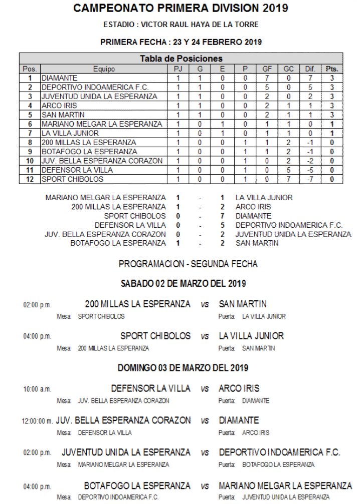 CONTINUA ESTE FIN DE SEMANA EL CAMPEONATO DE LA PRIMERA DIVISION EN LA ESPERANZA